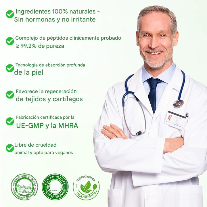 Desarrollado por laboratorios líderes en biotecnología — Diseñado para la salud articular con cuatro garantías científicas de eficacia y seguridad.